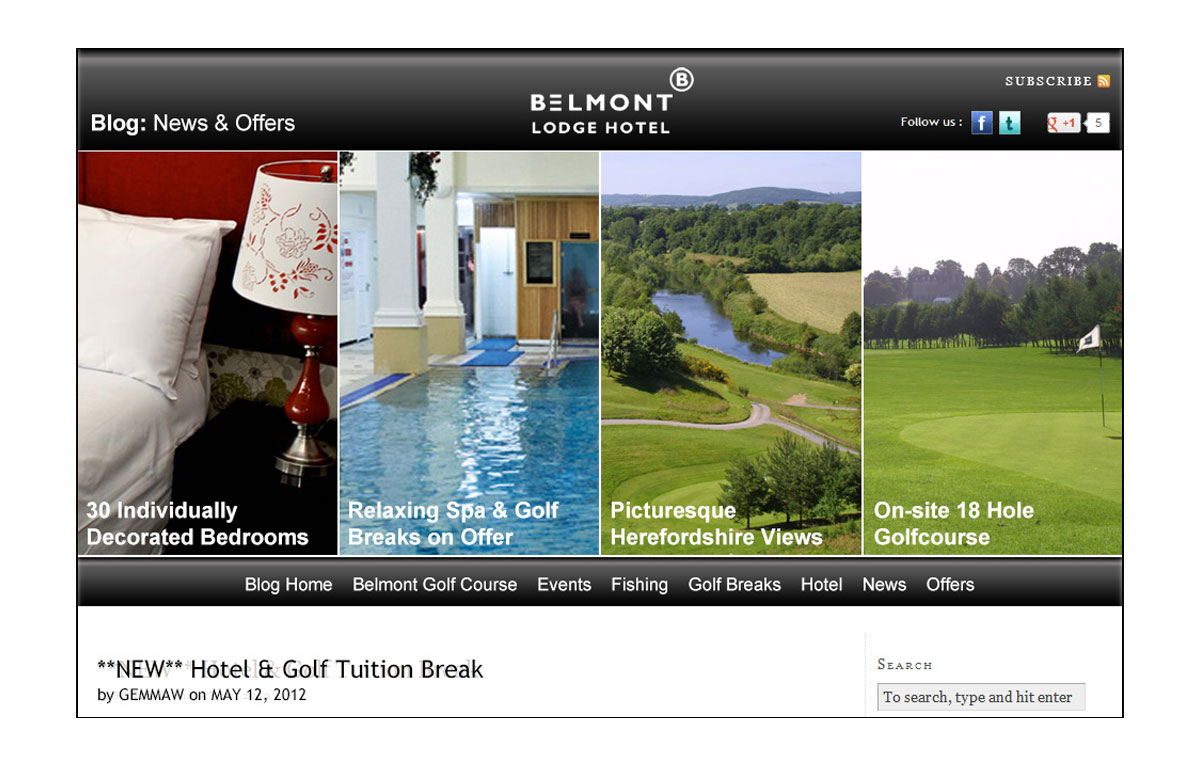 Mobile first UI / web design for Belmont Lodge Hotel & Golf Course, Hereford