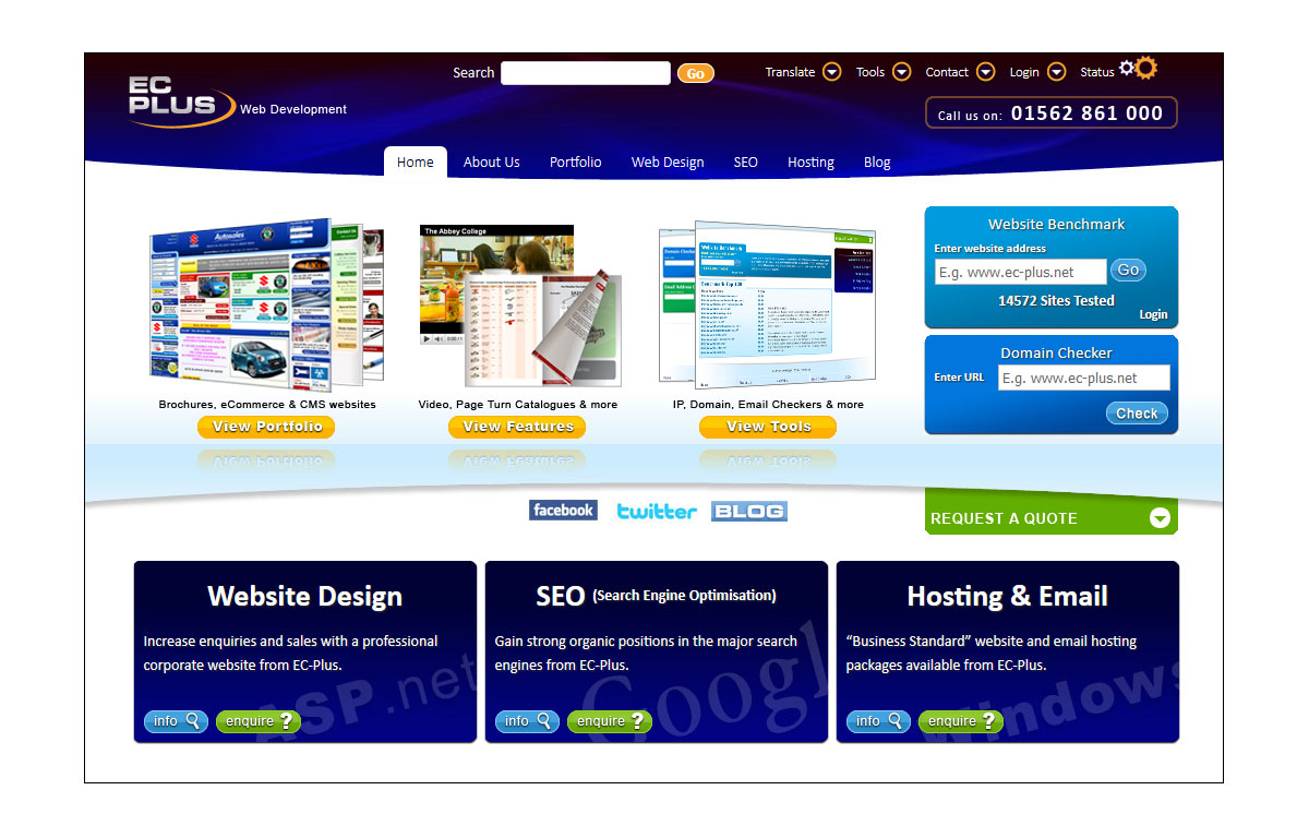 This UI design was designed with pushing the 3 core services the company offers prominantly along with some useful web design tools too. It was designed to be eye-catching and engaging to the user.